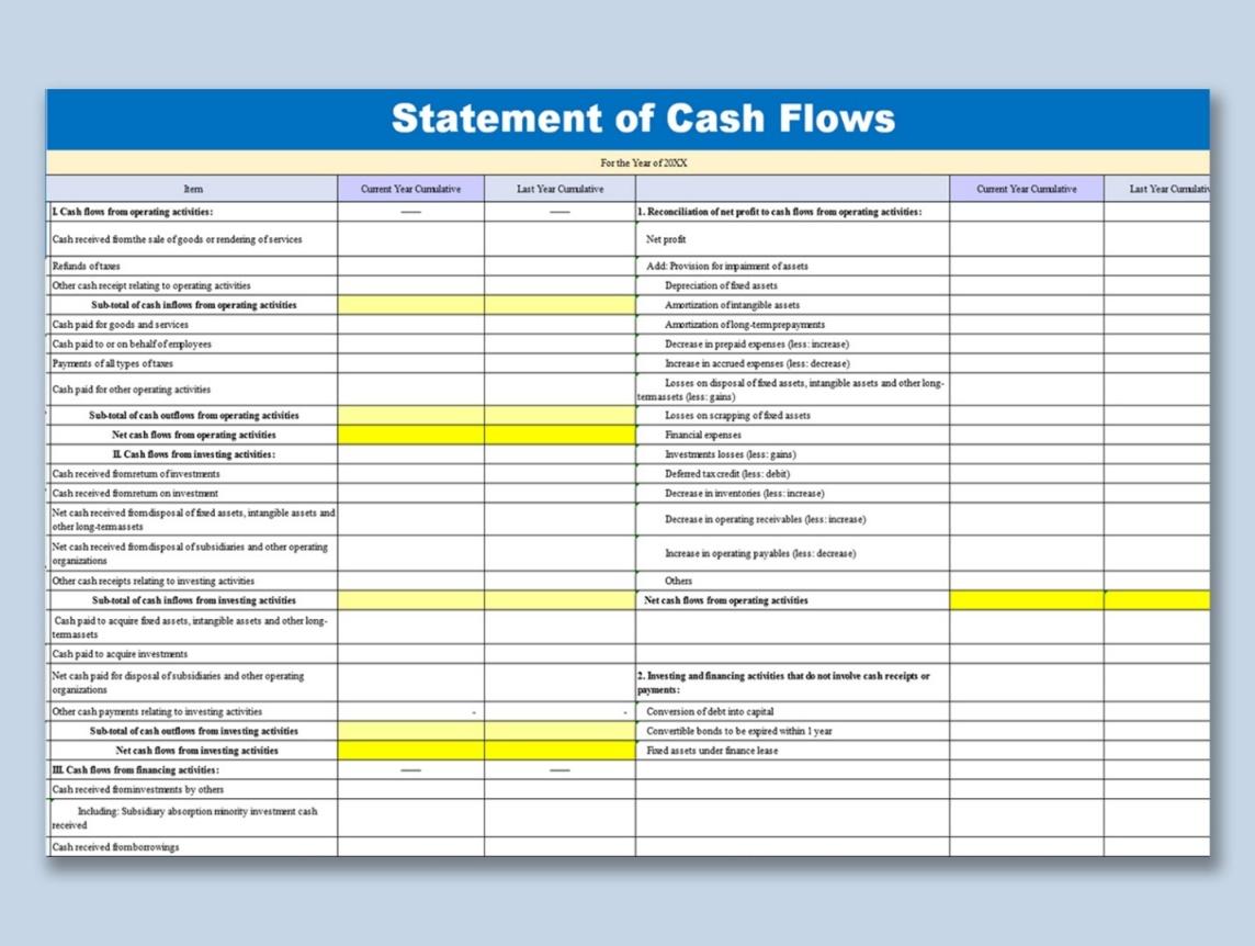 Los contadores y los gestores financieros encontrarán útil esta plantilla para preparar los estados de flujo de caja, y les ahorrará mucho tiempo. Por eso, existe esta plantilla de cuadro de flujos de caja.