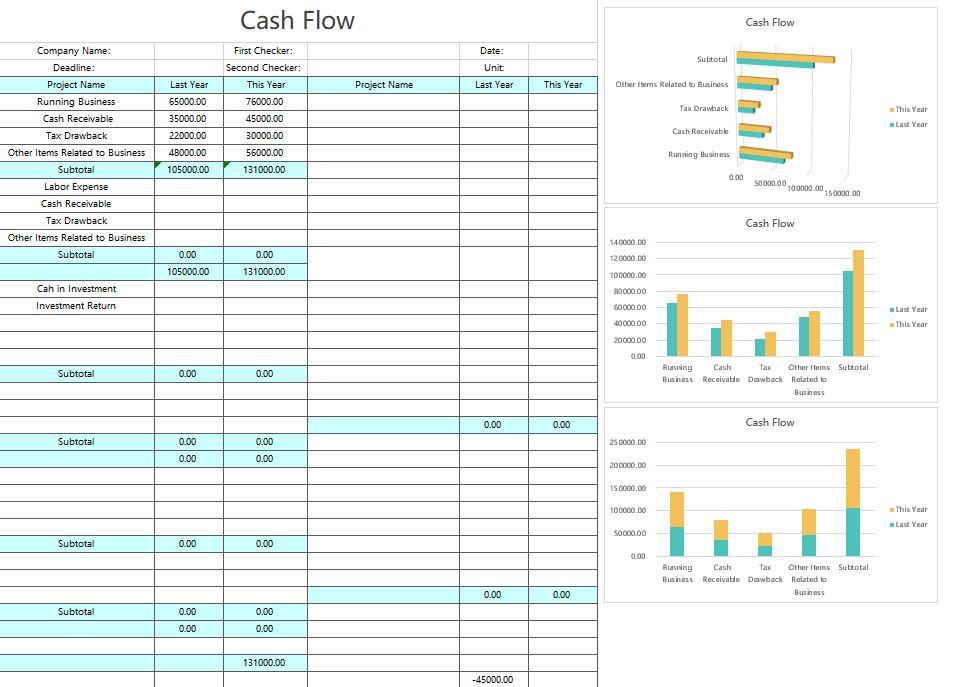 Para cualquier negocio, un estado de flujo de caja proporciona una imagen detallada de lo que sucedió con el efectivo de una empresa a lo largo del tiempo y es uno de los tres estados financieros más importantes. ¡Utilice este gráfico de la plantilla del estado de flujo de caja en WPS!