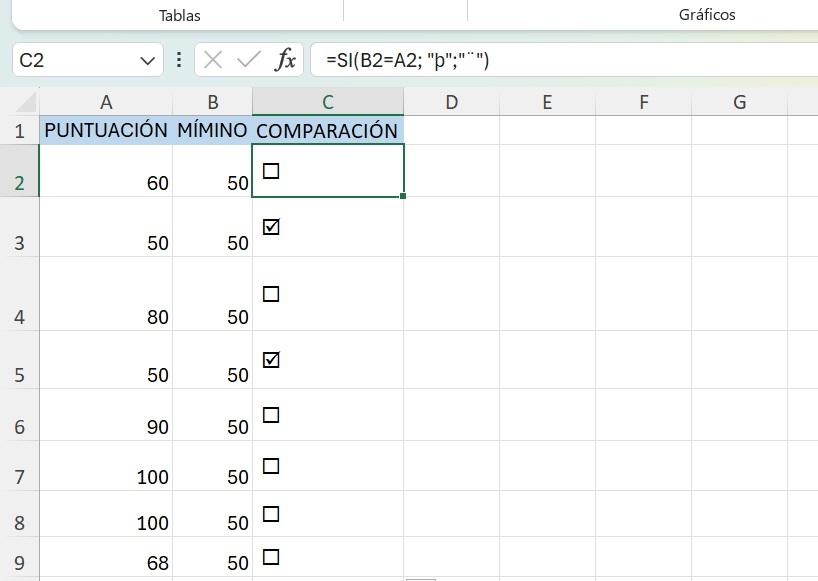 Método 4: Usar una Fórmula para Marcar una Casilla de Verificación Basada en el Valor de la Celda en Excel