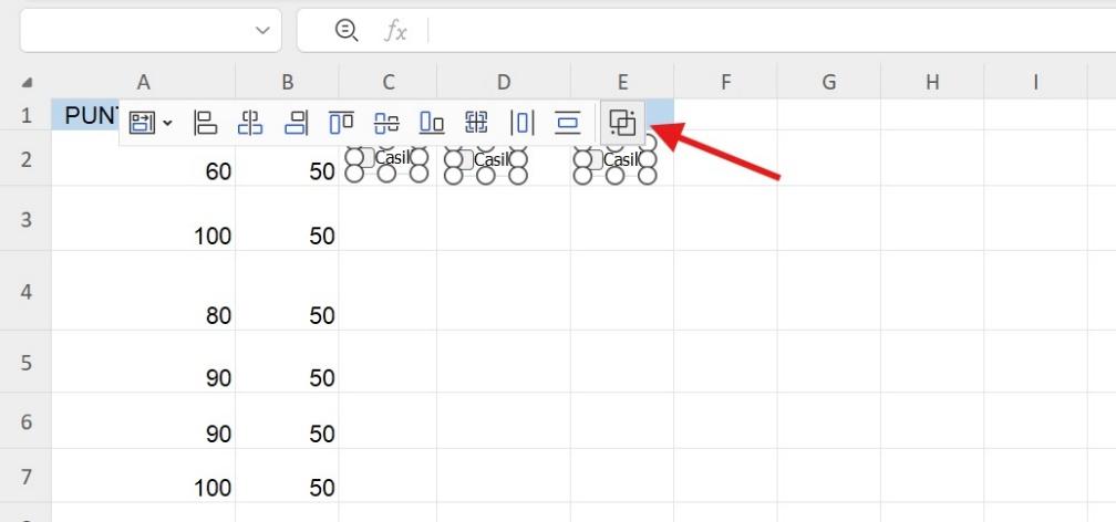 2. También puede insertar varias casillas de verificación en sus hojas de cálculo de Excel. Una vez creadas las copias de las casillas de verificación, haga clic en el grupo como se muestra a continuación.