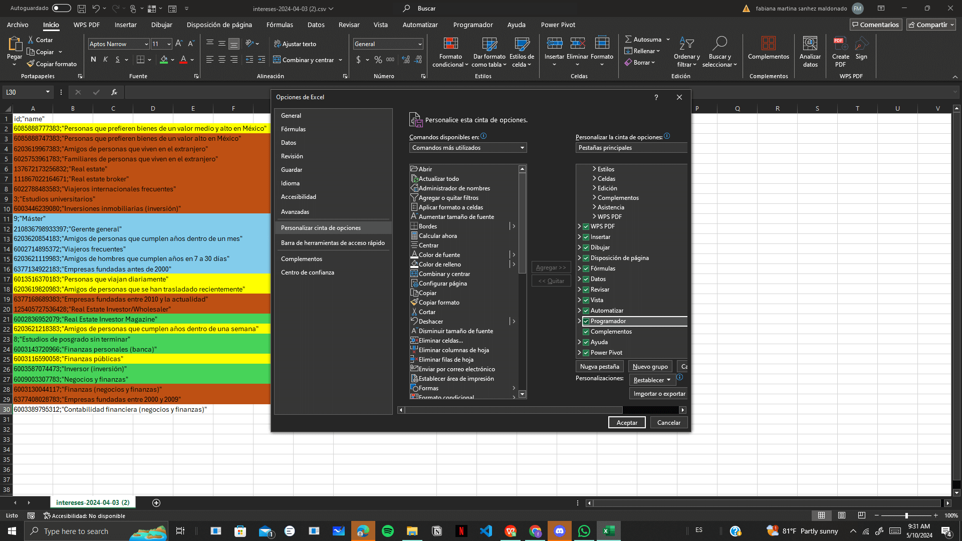 Si aún no tienes la pestaña "Programador" visible en Excel, sigue estos pasos: