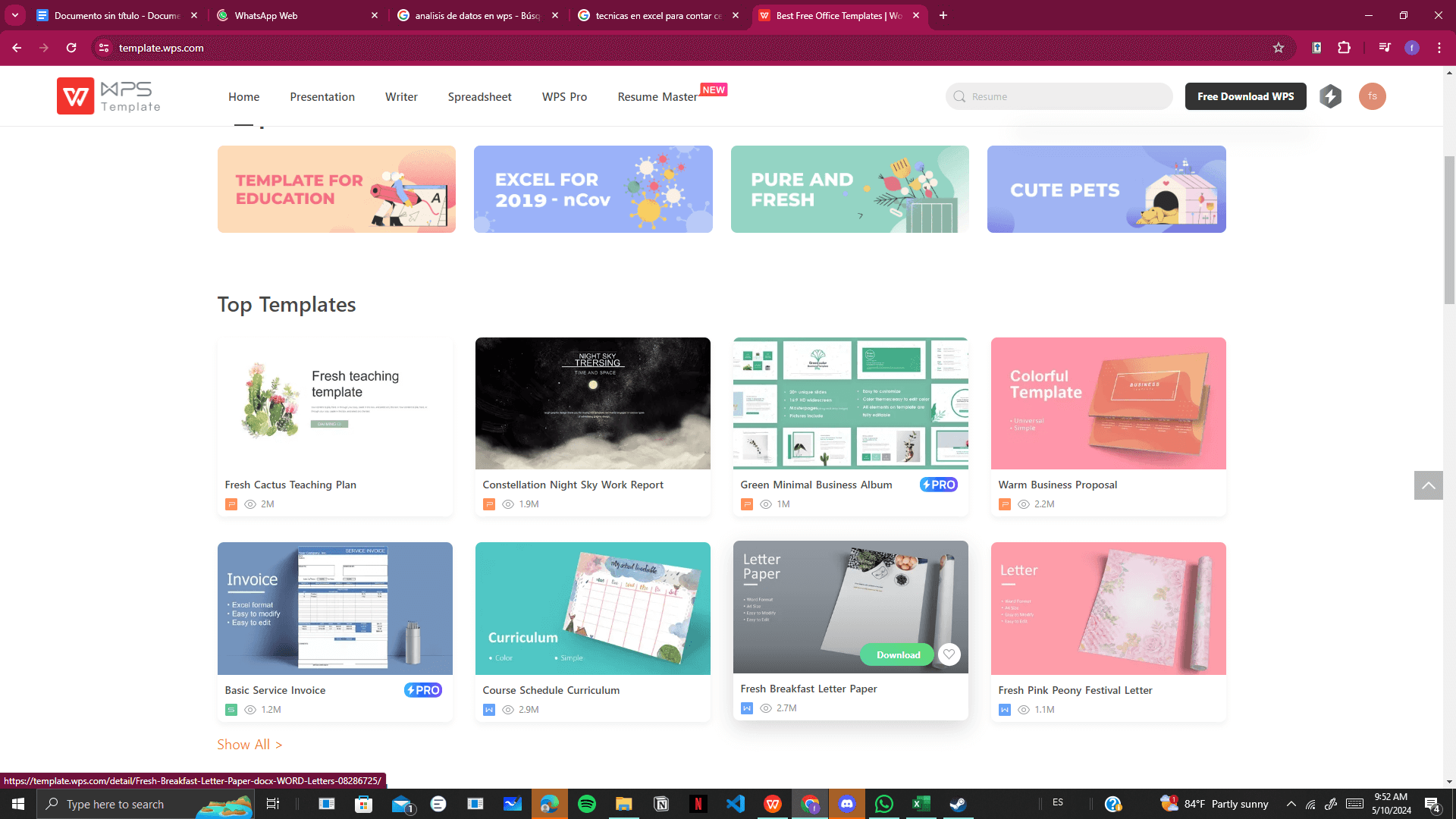2. Integración de Plantillas: WPS Office proporciona una amplia selección de plantillas predefinidas para diferentes tipos de documentos, incluidas hojas de cálculo. Estas plantillas facilitan la creación de documentos profesionales y atractivos sin necesidad de diseñarlos desde cero.