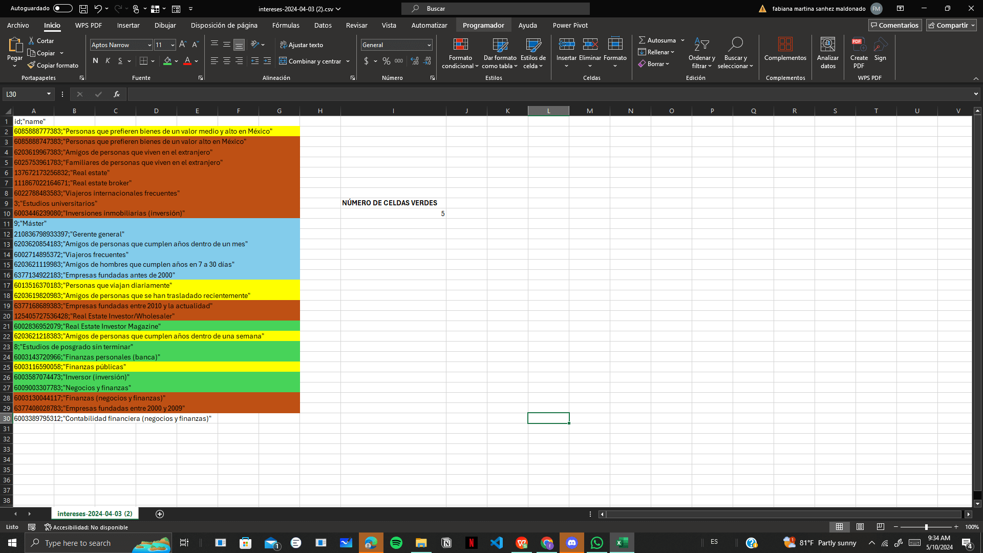 Observa el resultado de tu fórmula para tener una comprensión clara de cuántas celdas cumplen con la condición de color especificada. Esto puede ayudarte a identificar patrones o tendencias en tus datos de manera eficiente.