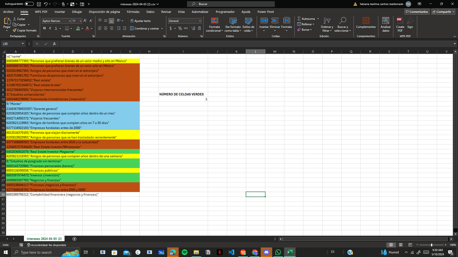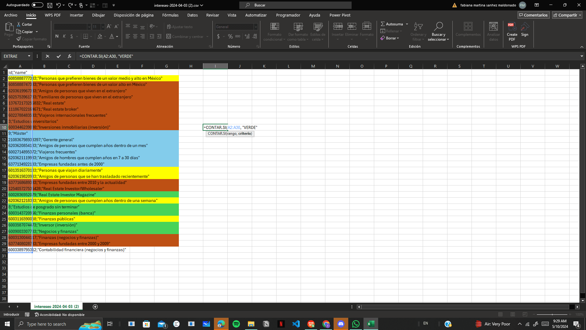 Técnicas en Excel para contar celdas por color
