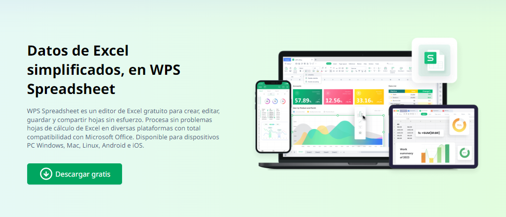Compatibilidad: WPS Office puede abrir una variedad de formatos de archivo, incluyendo el formato XLSX de Microsoft Excel, lo que facilita la transferencia de datos entre diferentes aplicaciones sin perder el formato original. Además, es compatible con múltiples sistemas operativos como Windows, Mac y Linux.