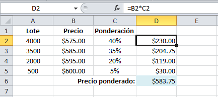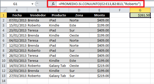Promedio ponderado: =AVERAGEIF() y =AVERAGEIFS()