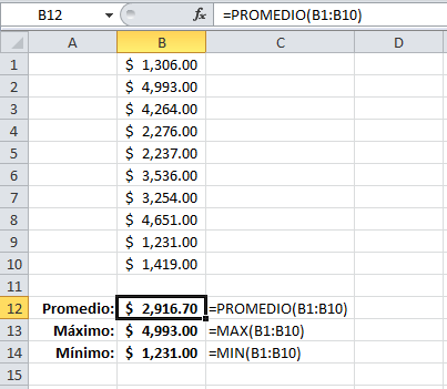 Utilizando =MIN() y =MAX() junto con =AVERAGE(): Para encontrar el promedio mínimo y máximo:
