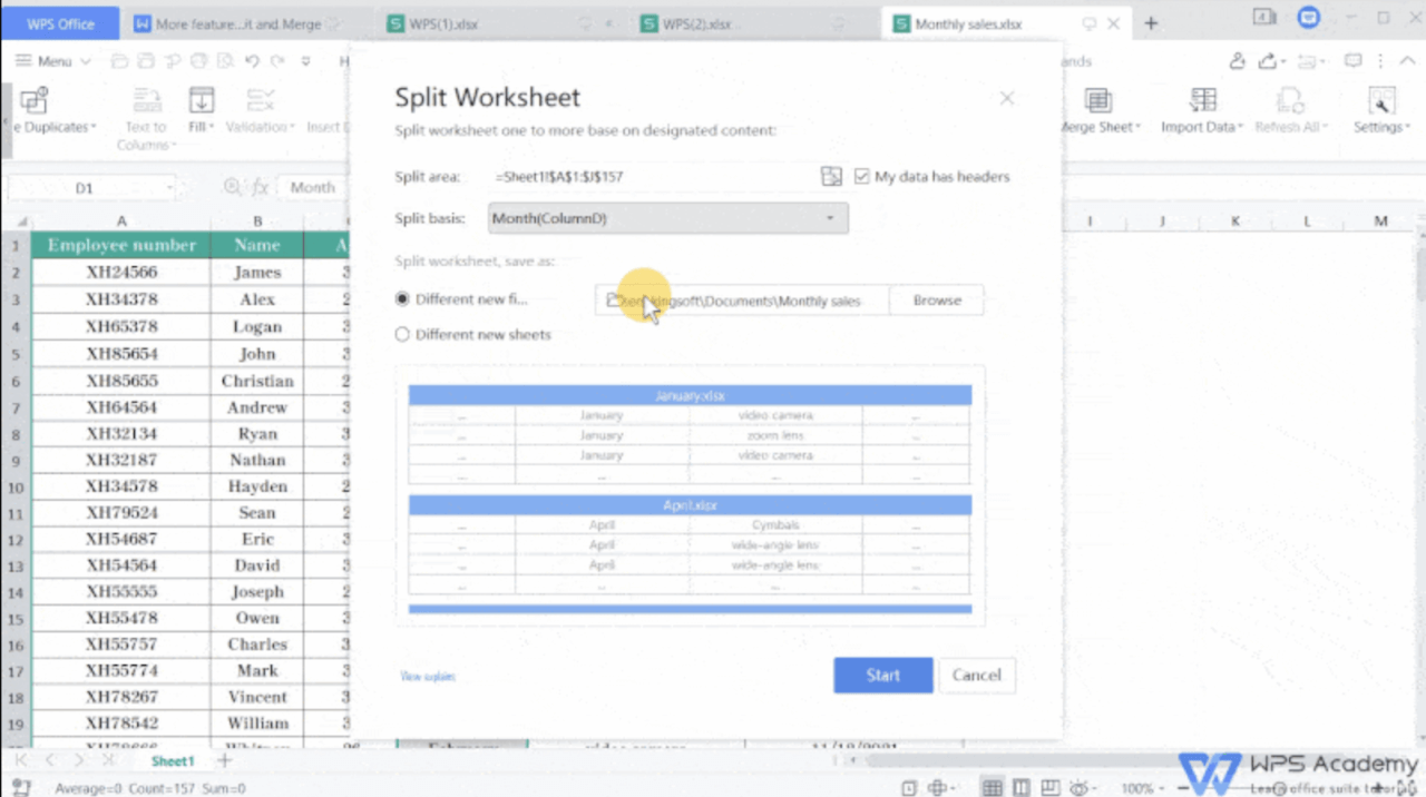 WPS Spreadsheet facilita la división y combinación de hojas de cálculo, permitiendo a los