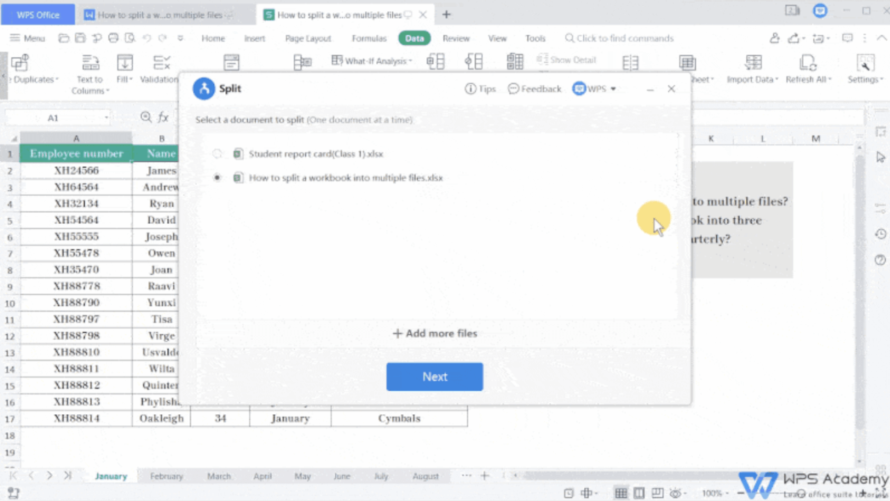 Dividir hojas por contenido en WPS Office se realiza mediante la siguiente manera: