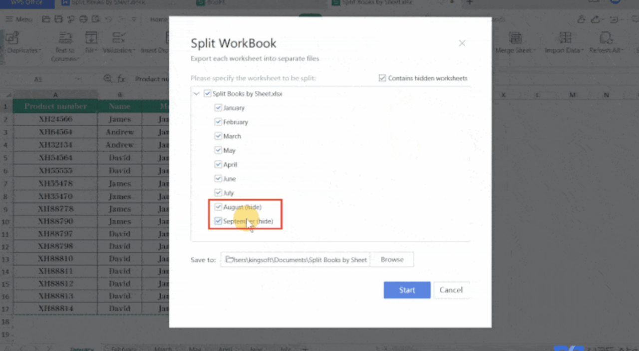 División automática de hojas: Puedes dividir un libro de trabajo completo en archivos separados con solo unos pocos clics, cada hoja se convierte automáticamente en un nuevo archivo independiente, lo que ahorra tiempo y minimiza los errores humanos.