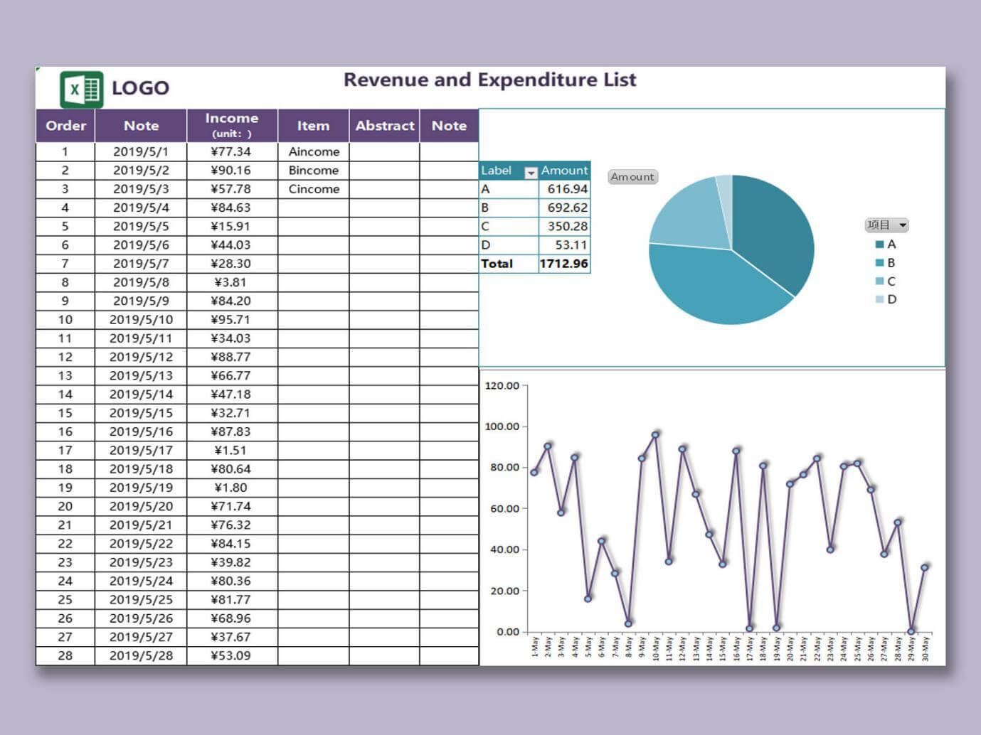 2. Plantilla de Excel de Lista de Ingresos y Gastos: