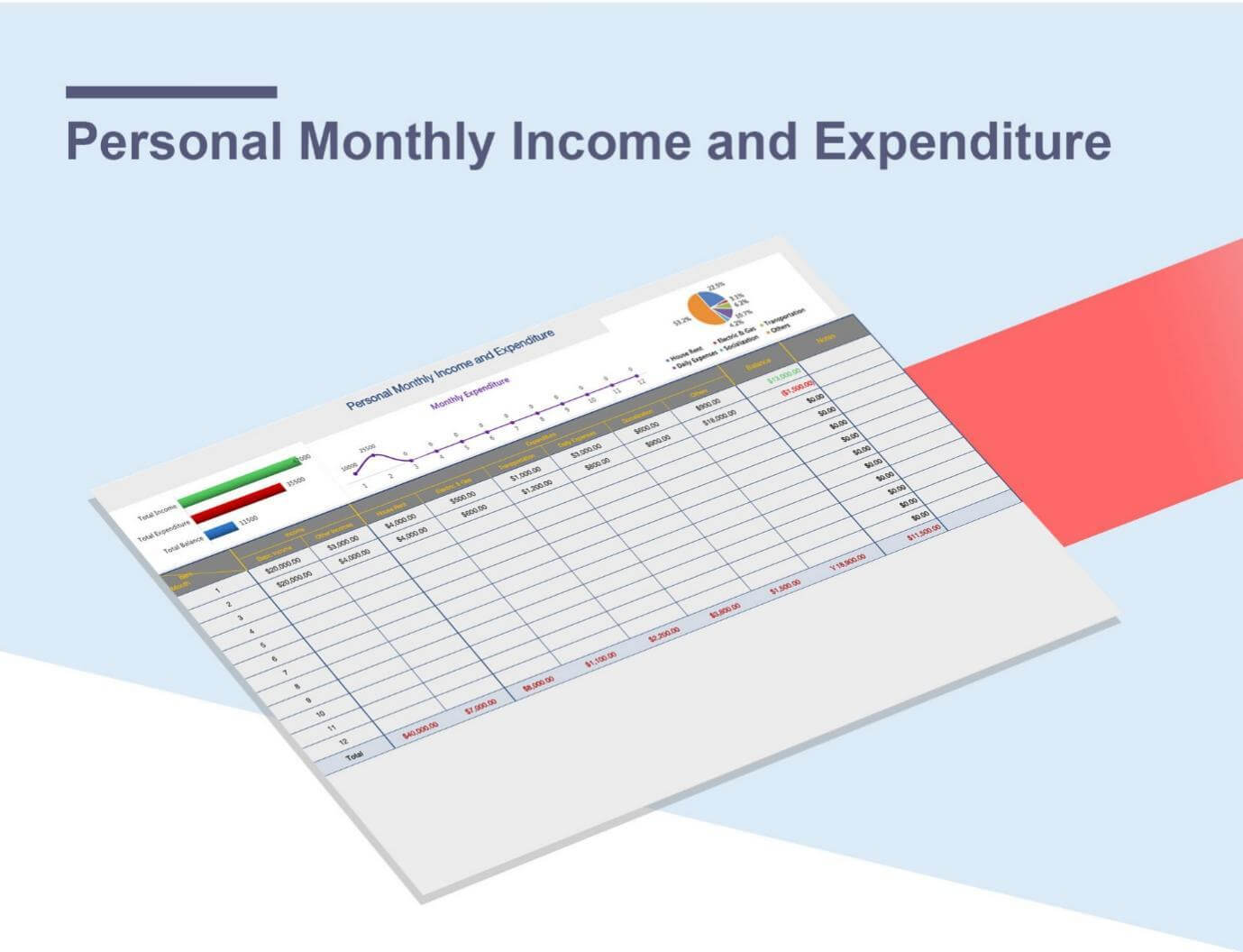 4. Plantilla de Excel de la Lista Mensual de Ingresos y Gastos Personales: