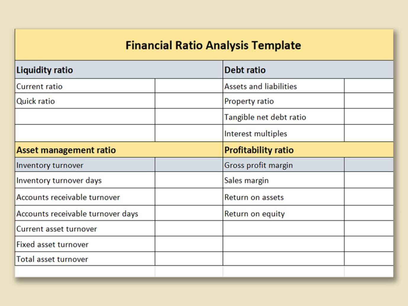 9. Plantilla de Excel de Análisis de Ratios Financieros de Gastos: