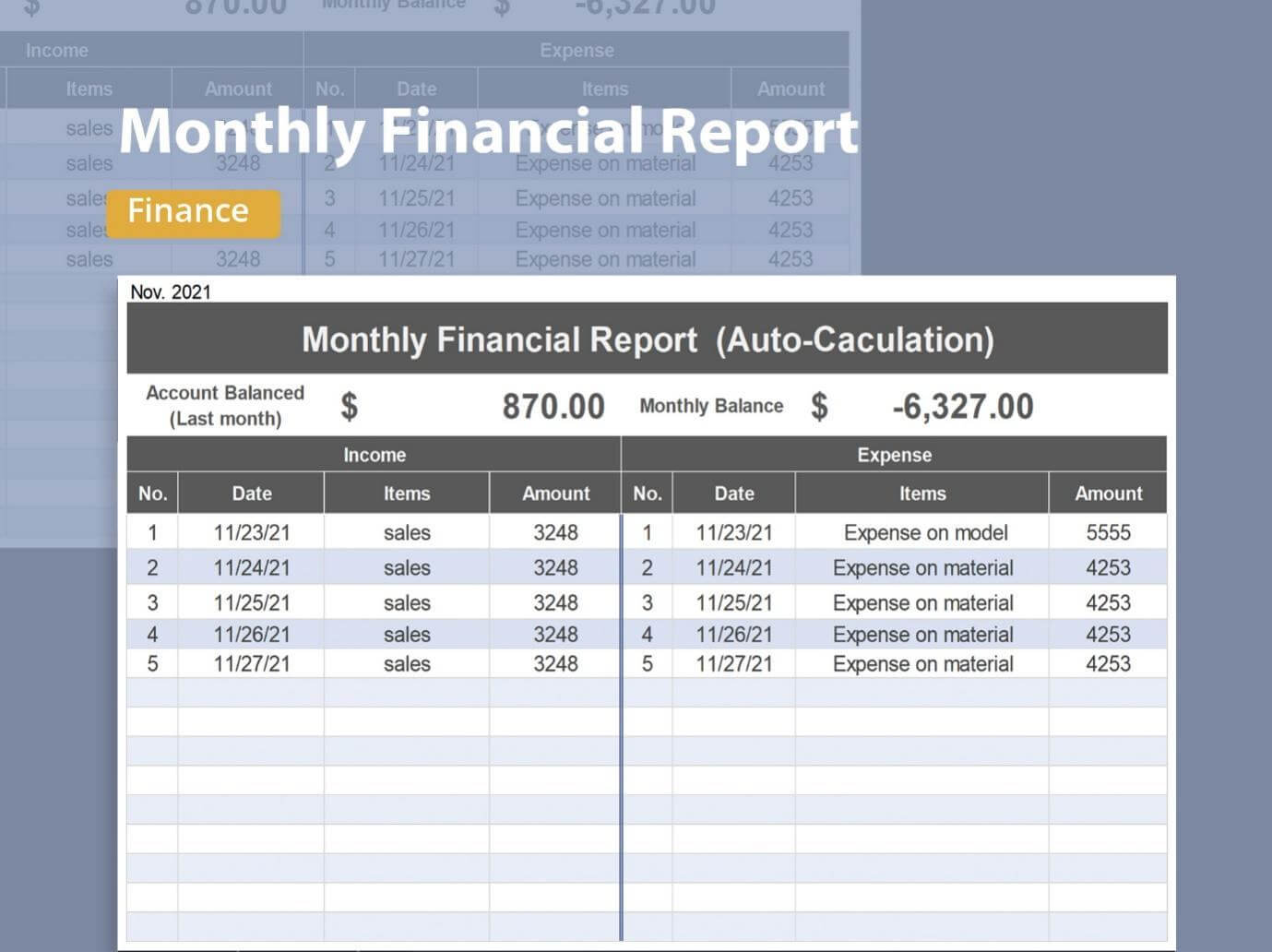 5. Plantilla de Excel de Informe Financiero Mensual: