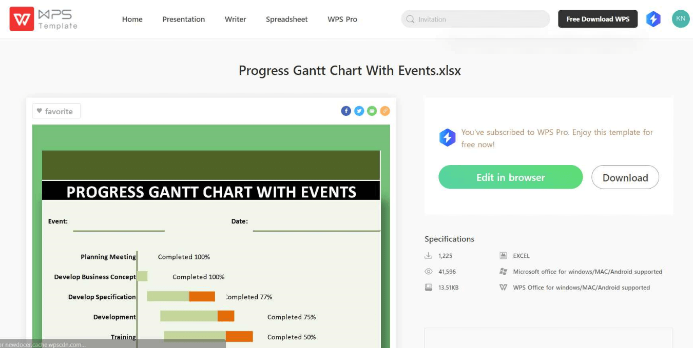 En esta sección, le guiaremos a través del proceso de la edición y la personalización de una plantilla de Excel para el seguimiento del progreso del estudiante utilizando WPS Office. Como ejemplo, tomaremos la plantilla “Diagrama de Gantt de Progreso con Eventos”.