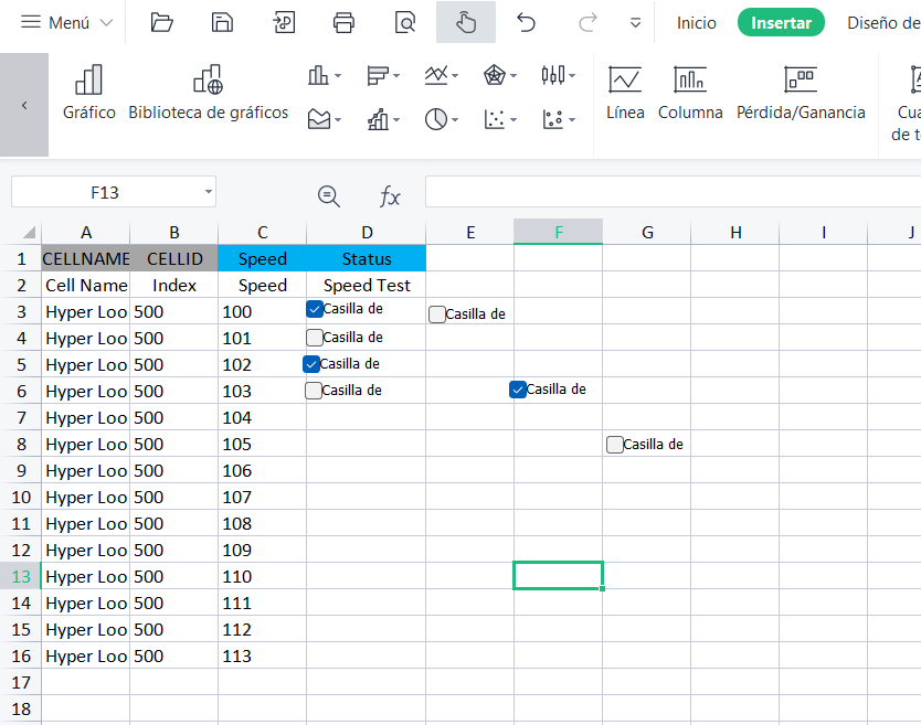 6. Finalmente, tendrás casillas de verificación según el resultado en cada celda. Este es uno de los métodos más eficientes para crear casillas de verificación en Excel sin el modo desarrollador.
