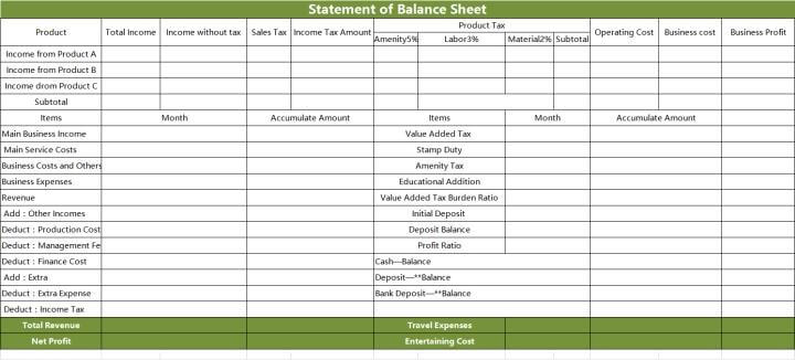 Esta plantilla está diseñada para ser práctica para los contadores. Con ella, los contadores pueden calcular el importe de los ingresos generados tras deducir los gastos. Le ayudará a la empresa a conocer su beneficio neto mensual