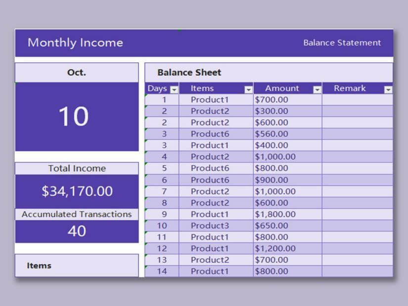 Esta plantilla está diseñada para ayudarle al contador en la gestión de las entradas. Puede ser utilizada por el departamento de contabilidad ya que aquí pueden reunir los ingresos de múltiples productos y pueden calcular sus ingresos y sus gastos totales dentro de la misma hoja.