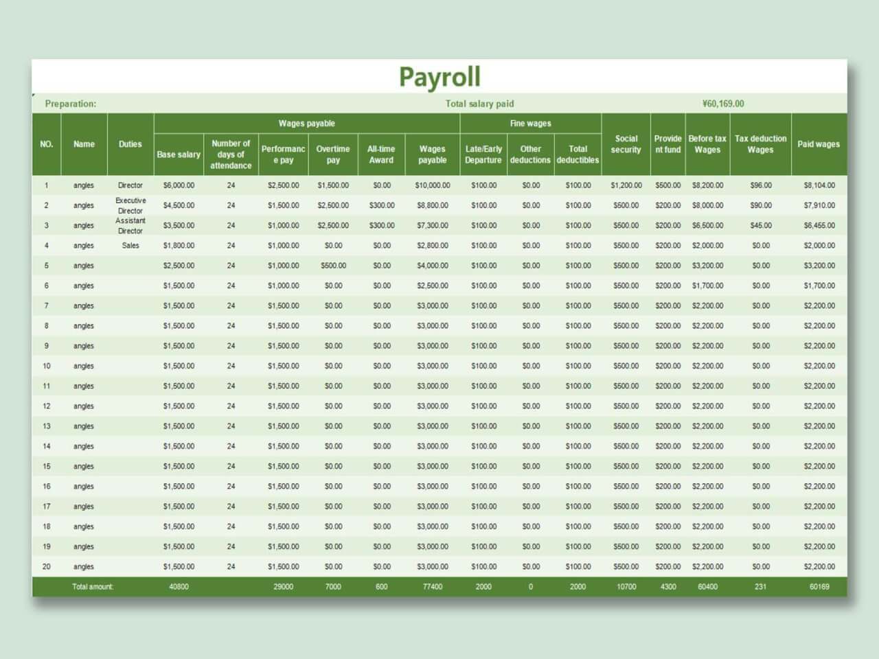 Es difícil gestionar la nómina de todos los empleados. Para ello, utilice la plantilla de tabla de cálculo de nóminas. El documento de nómina que incluye el fondo de previsión y los subsidios de los empleados junto con los datos de nómina para múltiples empleados.