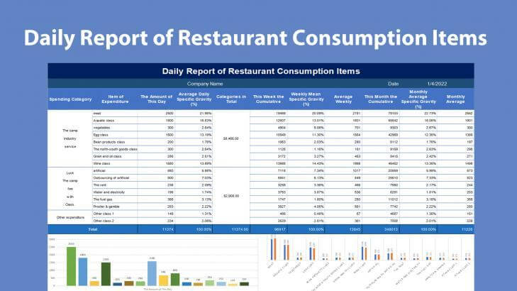 La elaboración de un informe al final del día puede suponer un problema para los restaurantes a la hora de mantener el informe por horas de su personal. Como gerente de un restaurante, usted acaba de trabajar un largo turno, es tarde por la noche y le gustaría irse a casa, pero en lugar de eso, tiene que sentarse frente al ordenador durante 30 minutos para introducir los números en una tediosa hoja de cálculo. Esta plantilla puede ayudarle a hacer un informe de los consumos del día de forma sencilla.