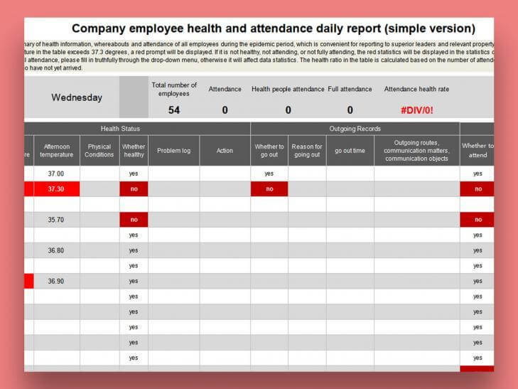9.Plantilla de Informe Diario de Salud y Asistencia de los Empleados de la Empresa