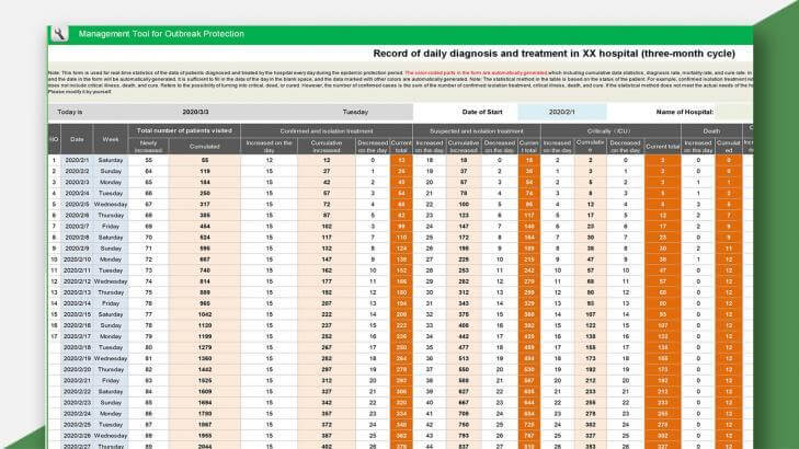 4.Plantilla de Registro de Diagnóstico y Tratamiento Diarios en XX Hospitales