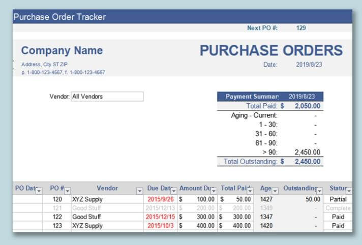 Una plantilla de seguimiento de pedidos le permite realizar un seguimiento del pedido y comprobar el estado en tiempo real de los pedidos de compra. Esta plantilla está en línea y disponible para su descarga gratuita.
