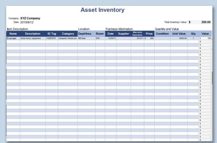 9.Plantilla de Formulario de Seguimiento de Activos Sencilla