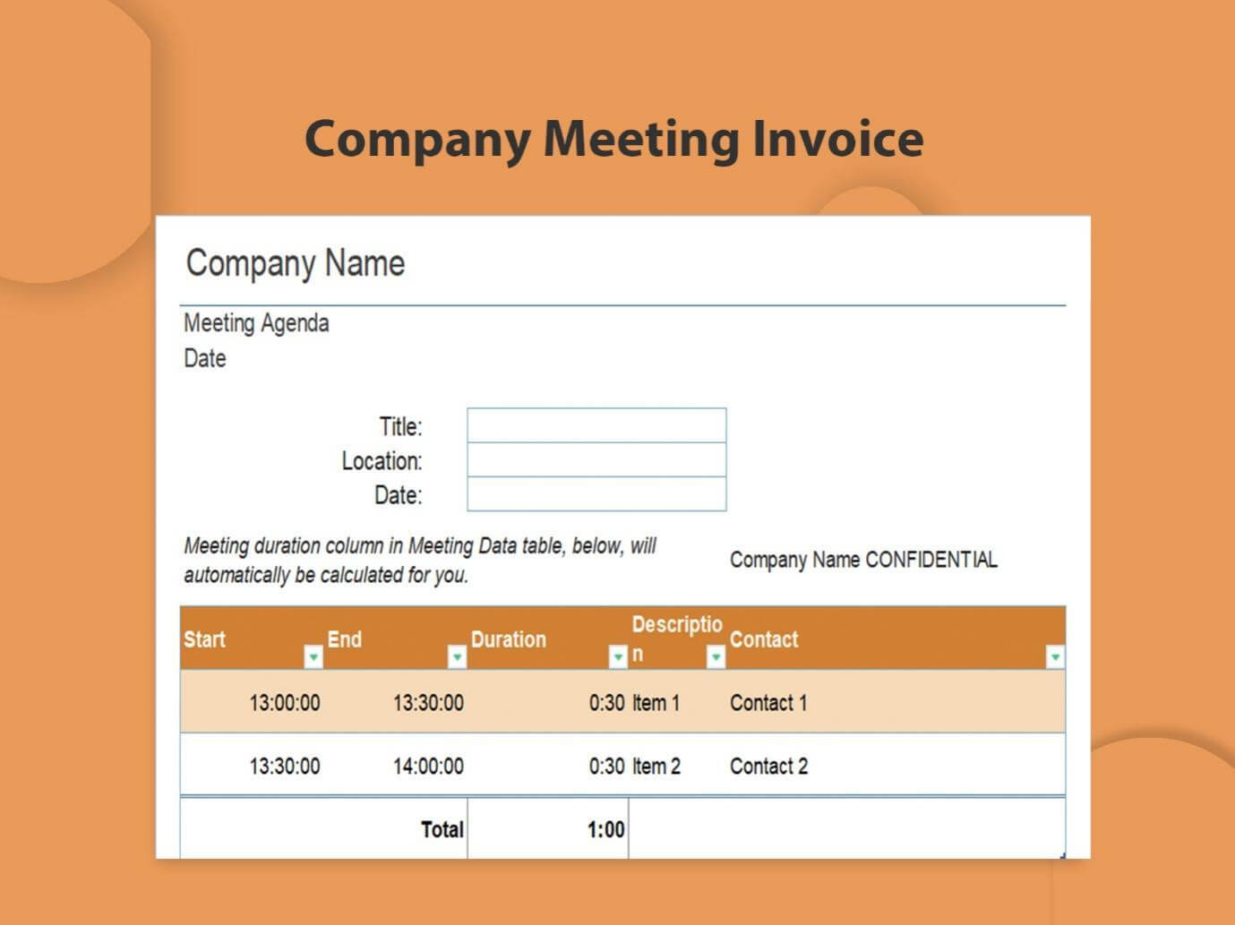 9.Plantilla de Factura de Reunión de la Empresa de Color Naranja: