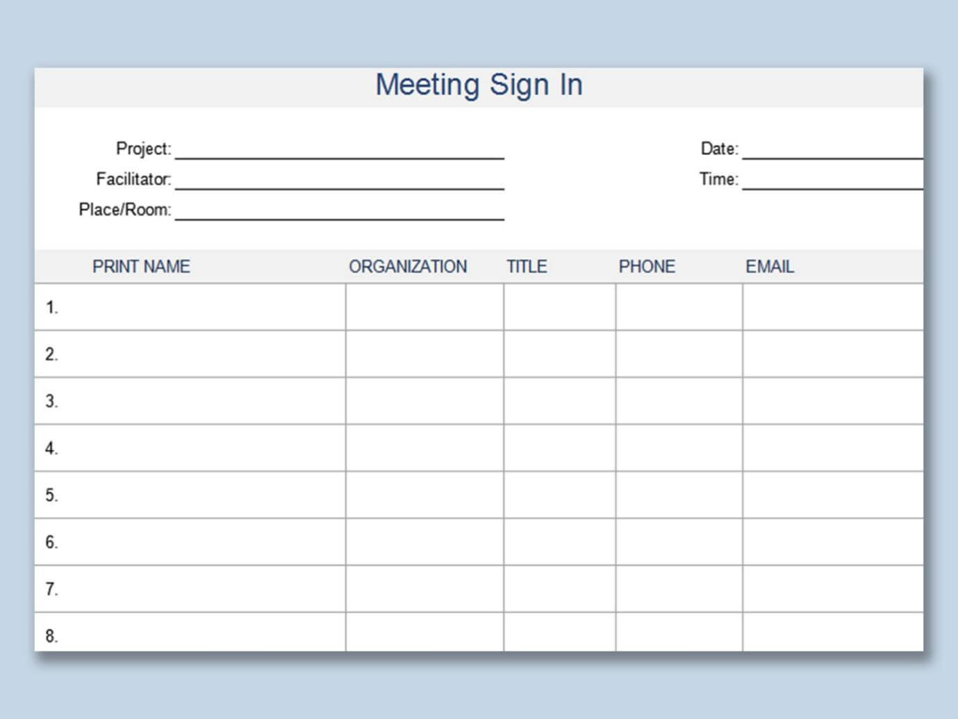 10.Plantilla de Hoja de Asistencia a Reuniones de Excel: