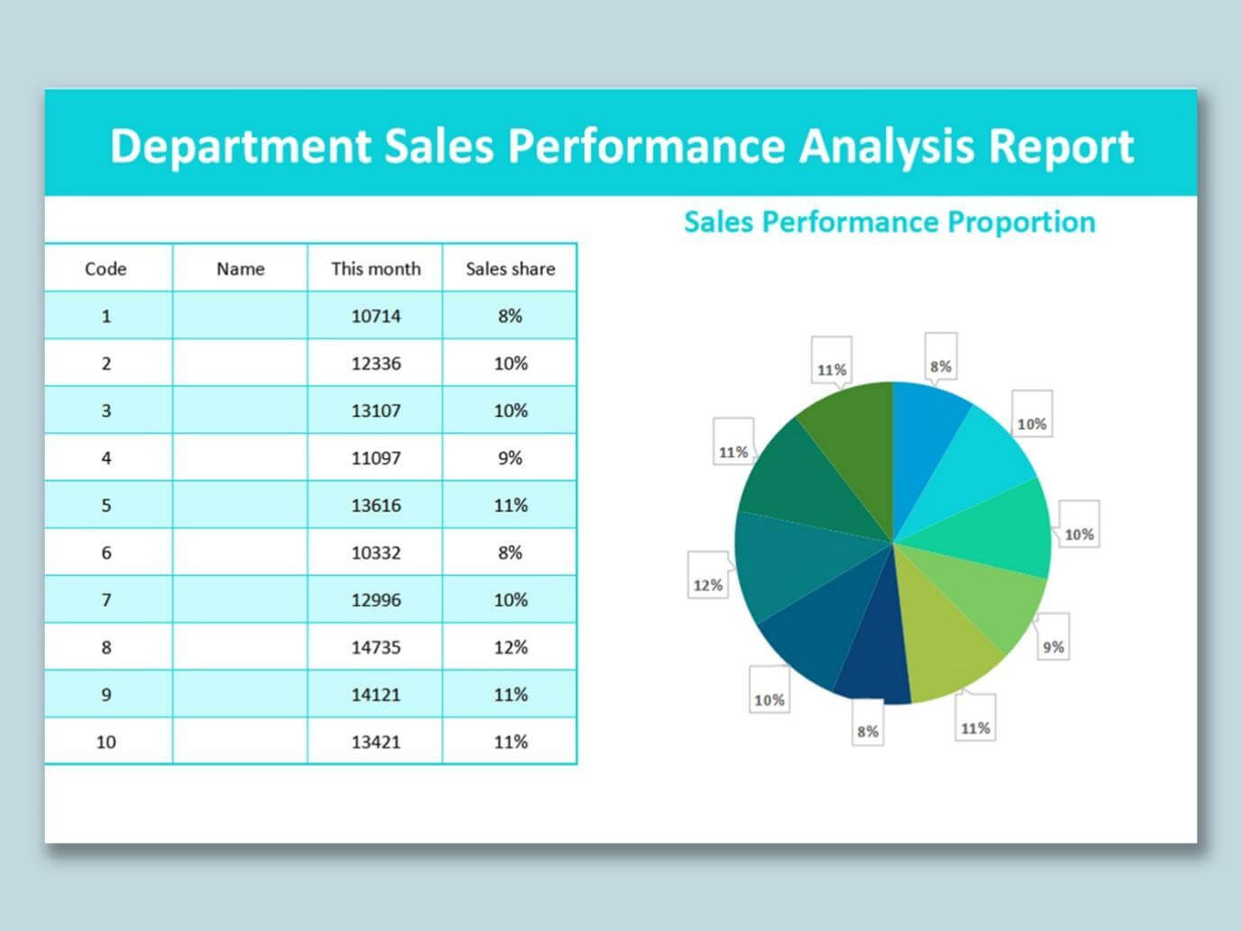 9. Plantilla de Análisis del Rendimiento de Ventas en Excel para Departamentos: