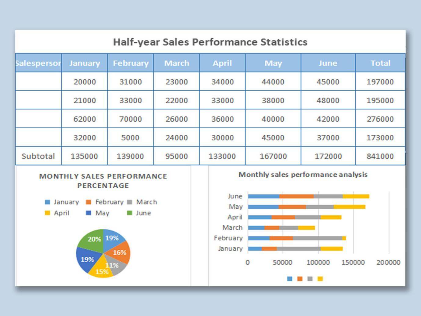 8. Plantilla de Estadísticas de Rendimiento de Ventas Semestrales en Excel: