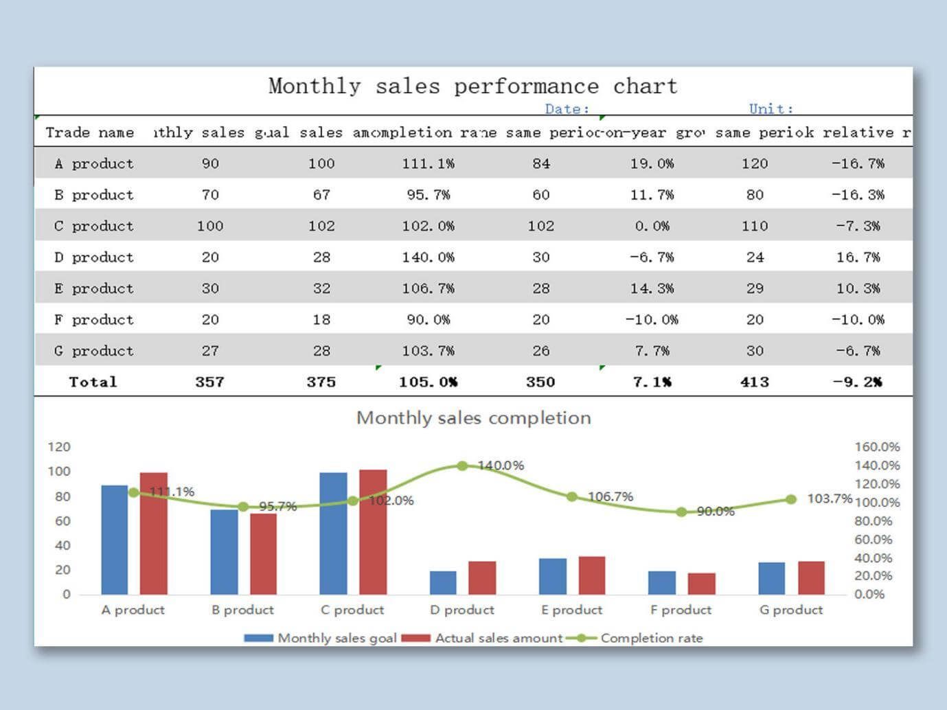 10. Plantilla de Gráfico de Rendimiento Mensual de Ventas en Excel:
