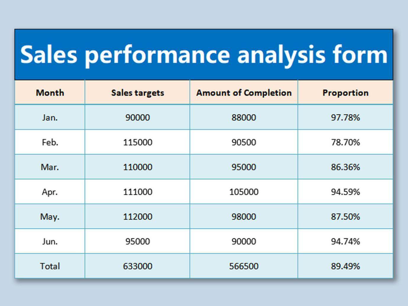 3. Plantilla de Formulario de Análisis del Rendimiento de Ventas en Excel: