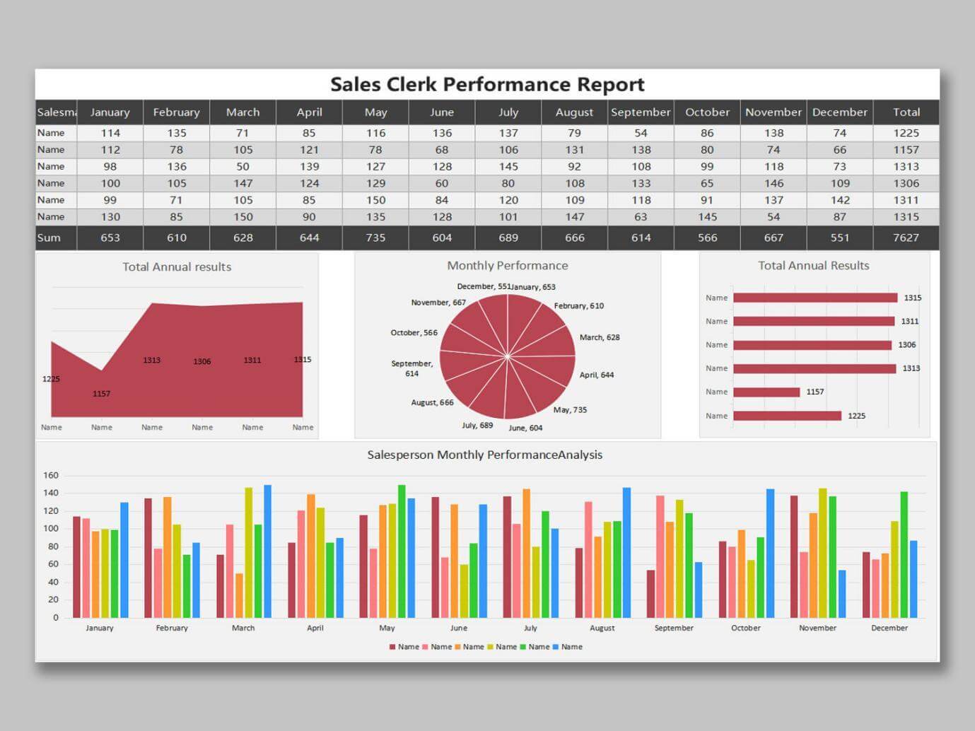 Este es un atractivo informe de rendimiento de ventas que se puede personalizar como mensual o anual. Descargue gratis esta plantilla bien organizada y agradable.