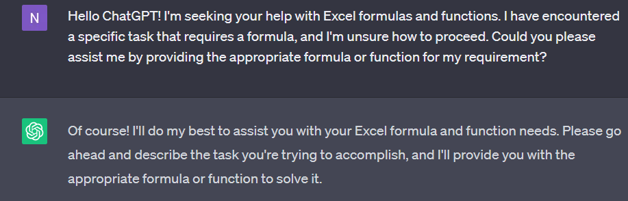 Expresa tu solicitud con total claridad: Empieza dirigiéndote a ChatGPT y expresando tu necesidad de ayuda con las fórmulas y funciones de Excel.