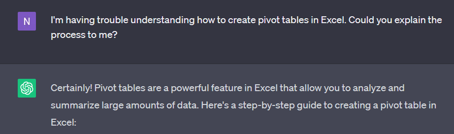 Para pedirle a ChatGPT que responda a conceptos de Excel de una manera más humana, puedes usar el siguiente enfoque: