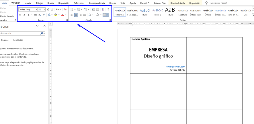 Luego, ajusta el formato de la tarjeta con las opciones de ‘Fuente’ y ‘Párrafo’ que verás en el menú de inicio del Word.