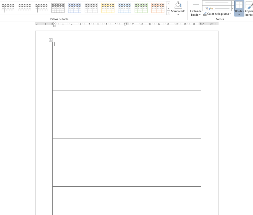 Esto nos dará una tabla donde cada celda tiene las dimensiones adecuadas para tus tarjetas.