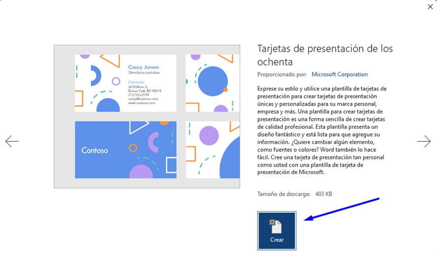 En la ventana emergente, haz clic en el botón ‘Crear’ para descargar la plantilla.