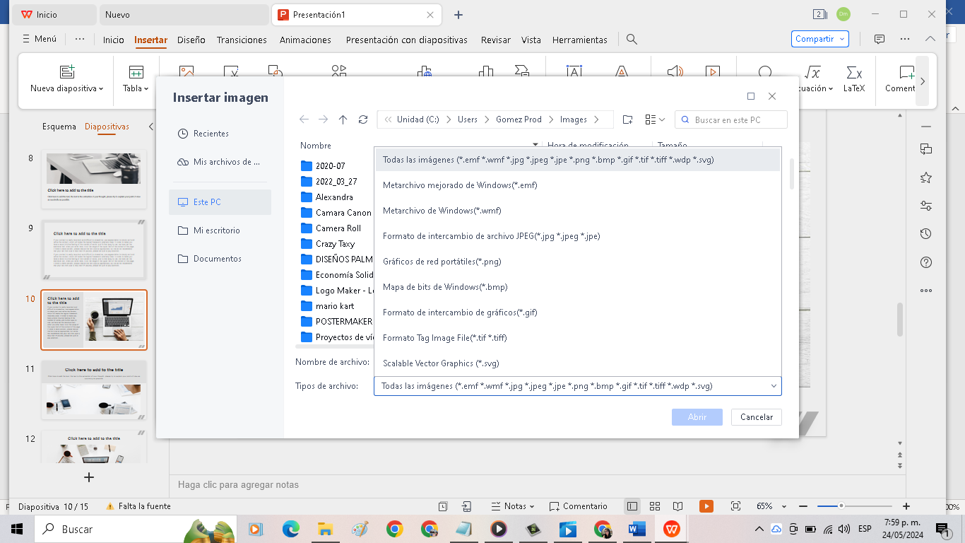 WPS Office ofrece muchas características para manejar y trabajar con imágenes en tus documentos y presentaciones ya que admite una amplia variedad de formatos de imágenes, incluyendo los más comunes como JPEG, PNG, BMP, GIF y TIFF.