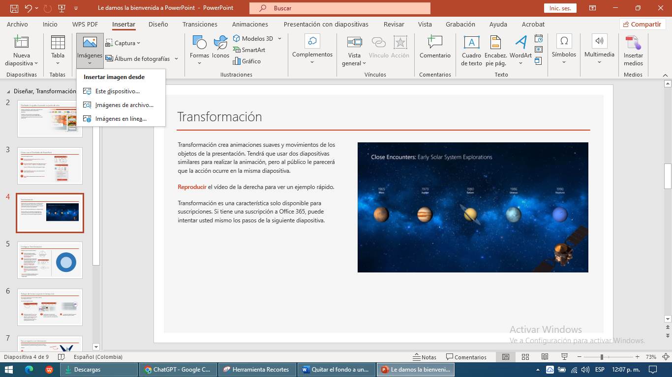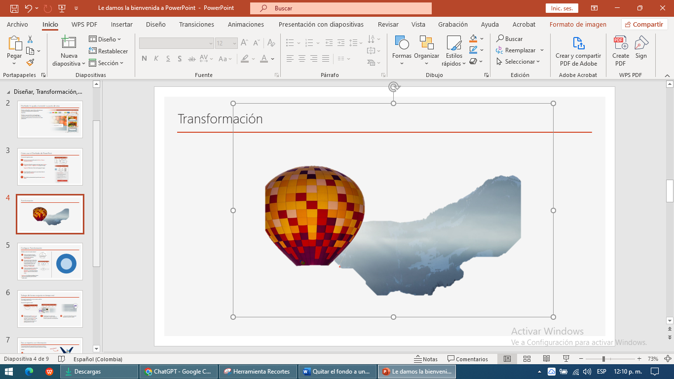Ajusta la imagen si es necesario: Después de quitar el fondo, puedes mover, redimensionar y ajustar la imagen según sea necesario para que se integre perfectamente en tu diapositiva.