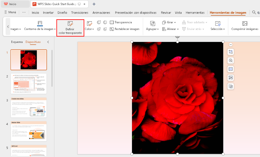 Selección de la imagen: Abre tu presentación de WPS Office e inserta la imagen que desees editar.