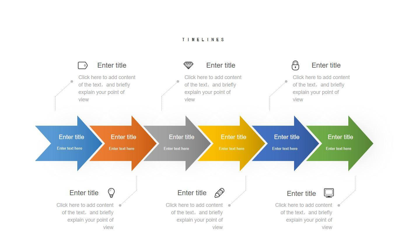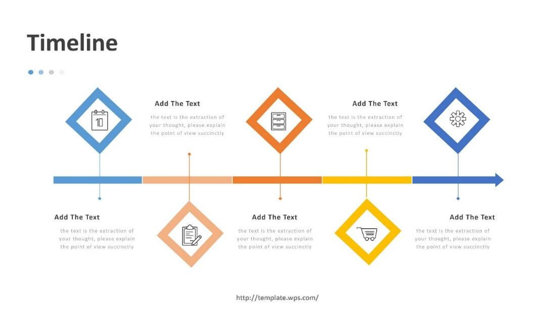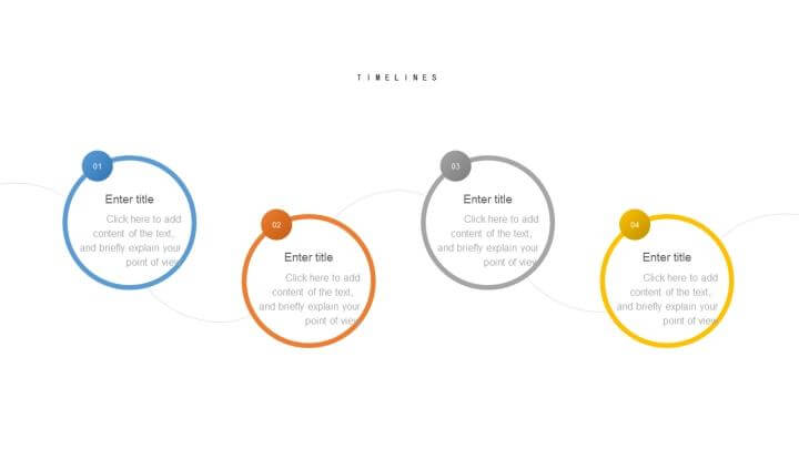 Esta plantilla de diagrama de flujo representa una línea de tiempo con círculos de colores con una línea curva simple pero atractiva. Usted puede utilizar esta plantilla para cualquier propósito. Descargue esta plantilla de forma gratuita y edítela con su contenido.
