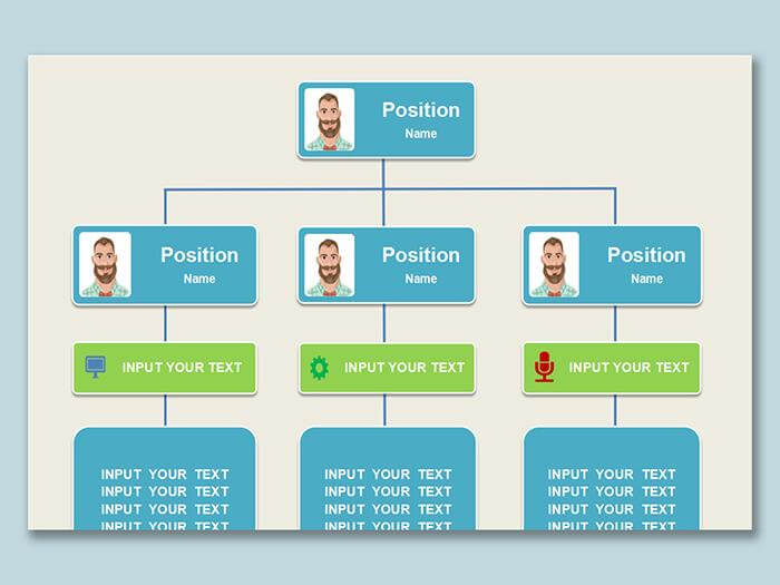 La siguiente plantilla de organigrama de nuestra lista es el Organigrama Simple. Esta plantilla es también una gran opción para las empresas, ya que permite crear un organigrama básico. Con imágenes de personas y breves anotaciones, usted puede hacer un seguimiento de los empleados de la empresa, así como de sus funciones individuales dentro de la misma.