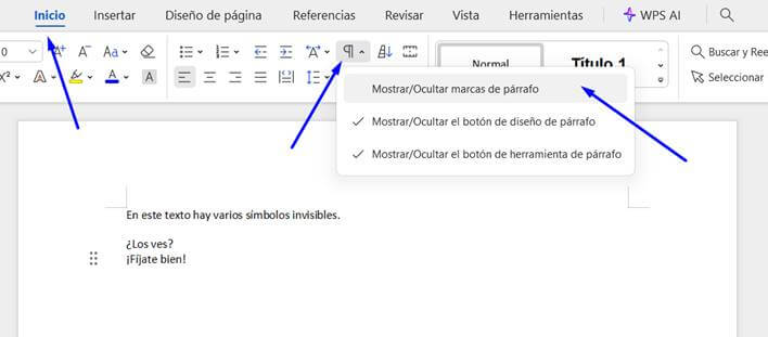 Ocultar y visualizar caracteres invisibles en WPS Writer