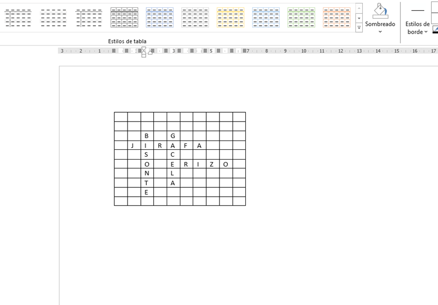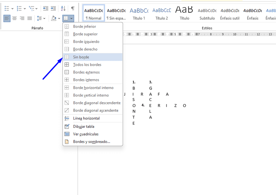 Para que el crucigrama tenga mejor aspecto, ve al menú de los bordes de tabla y selecciona la opción 'Sin borde'.