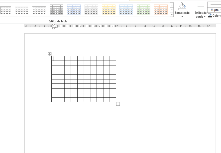 El objetivo es tener una tabla con forma de cuadrícula para empezar a escribir.
