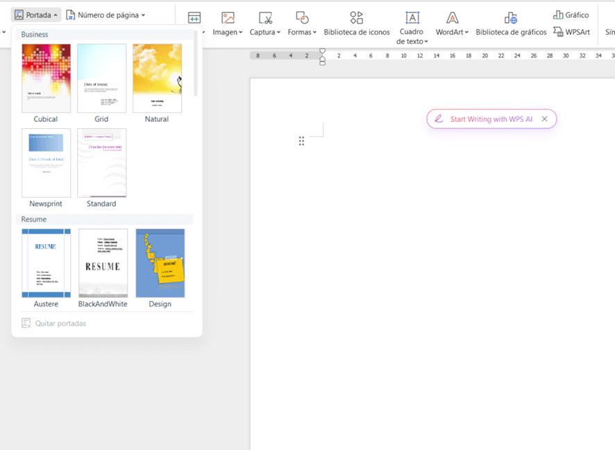 Solo necesitas un par de clics para introducir una portada de Word en tus documentos, tanto en Microsoft Word como en WPS Writer. La variedad de portadas prediseñadas es extensa en ambas aplicaciones, y en los dos casos vas a poder editar estos diseños para crear portadas completamente adecuadas a cada proyecto en específico.