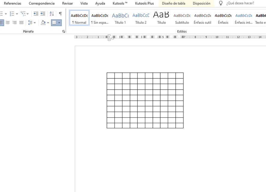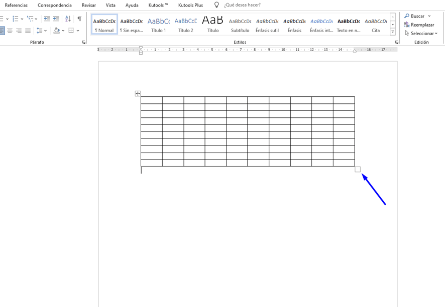 Entonces aparecerá la tabla en nuestro documento de Word, pero las celdas tendrán una forma rectangular. Pulsando y arrastrando la esquina inferior derecha de la tabla puedes ajustarla para que tenga el tamaño correcto.